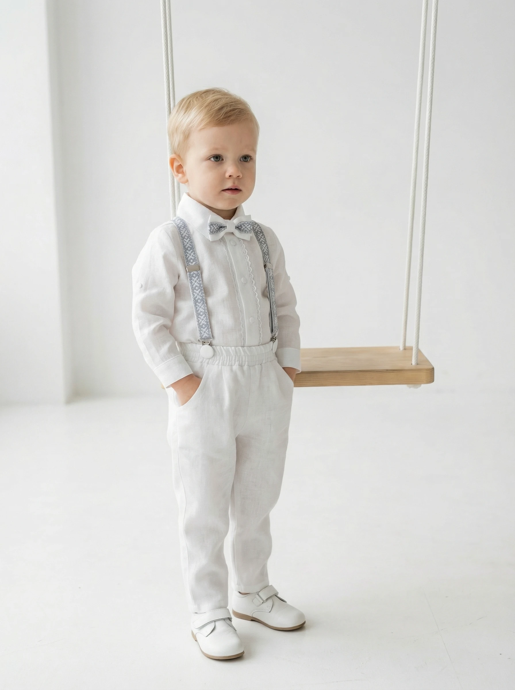 4 dalys (kelnės , marškiniai, petnešos, peteliškė)
