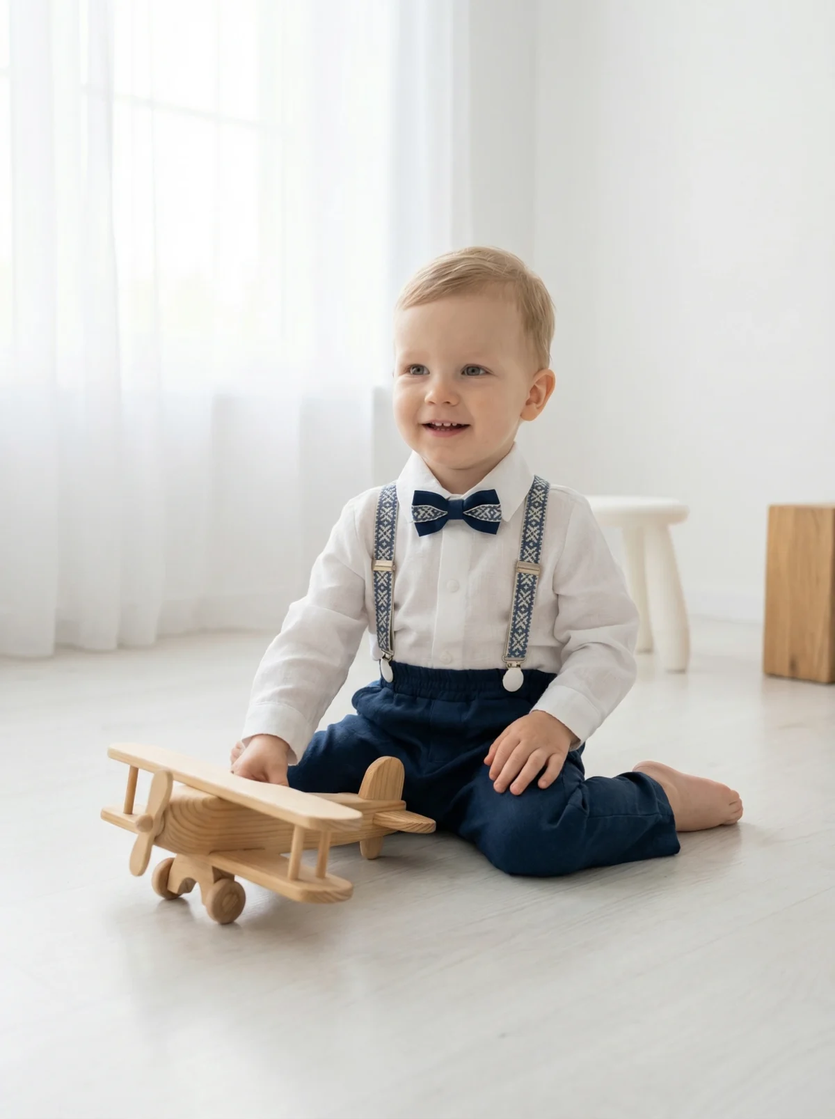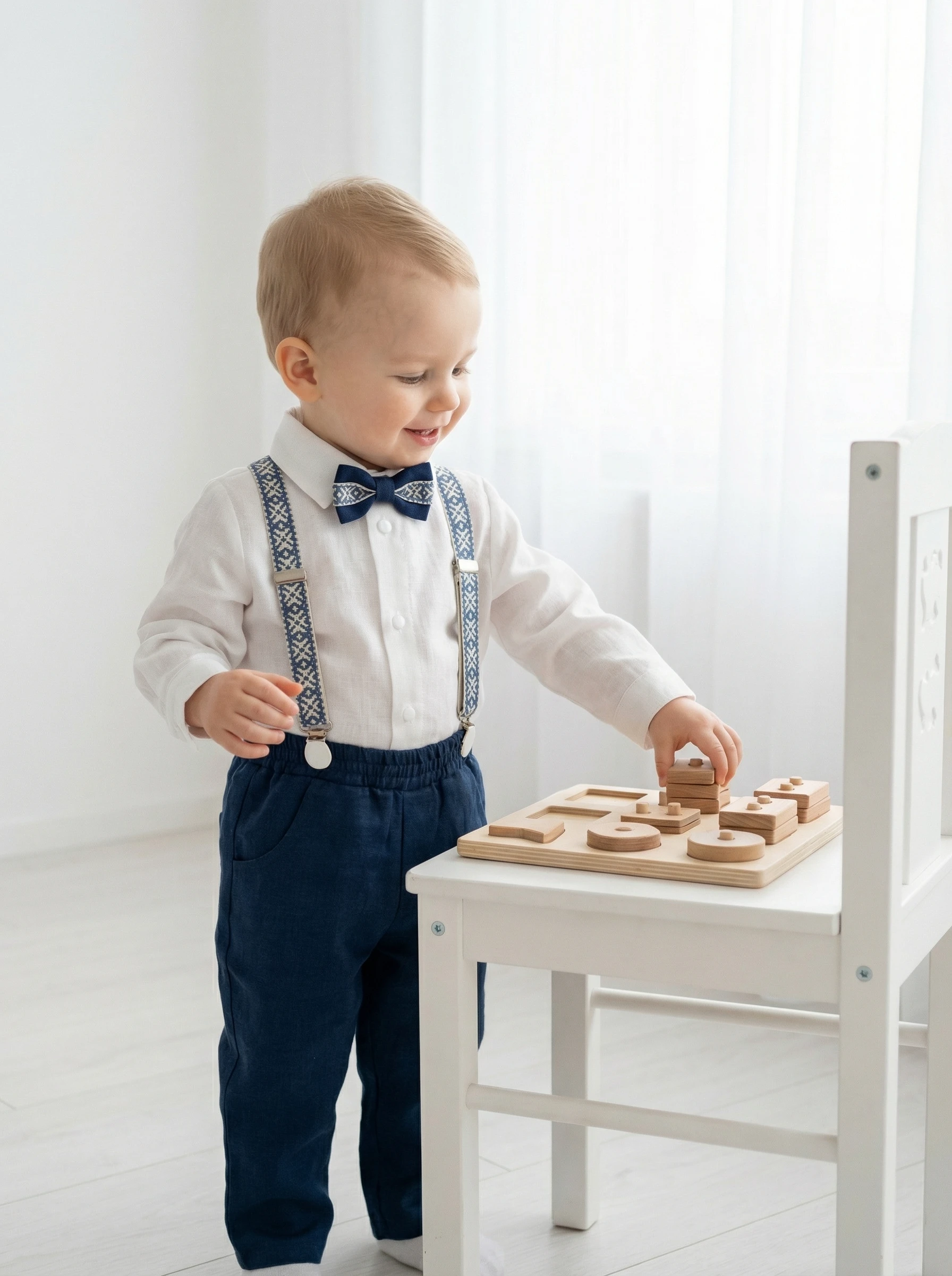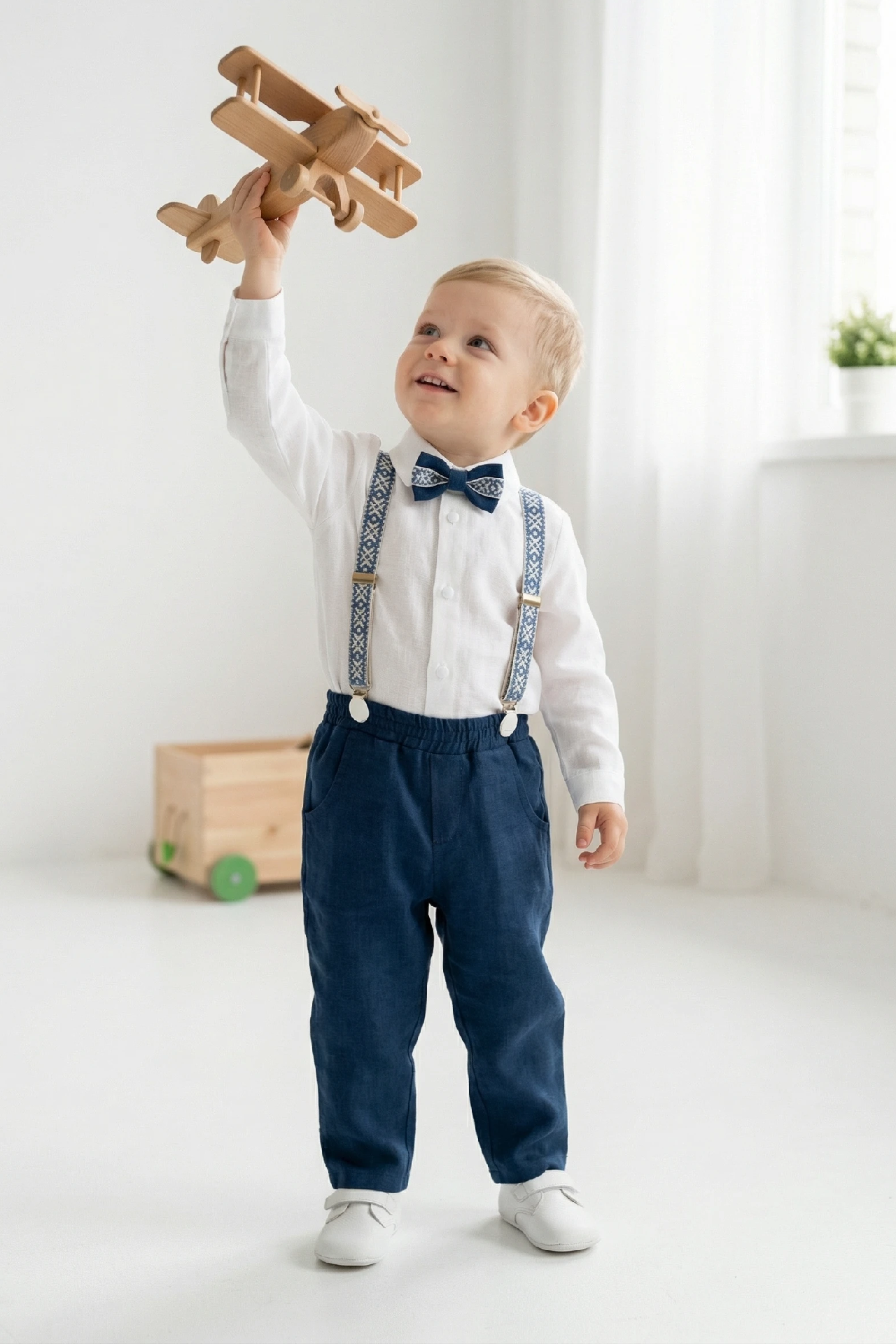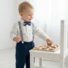 4 dalys ( kelnės, marškiniai, petnešos, peteliškė)
