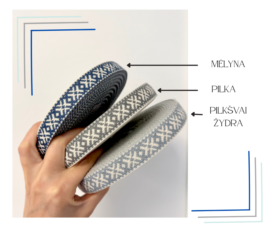 Aksesuarų raštas-pilkšvai žydri.