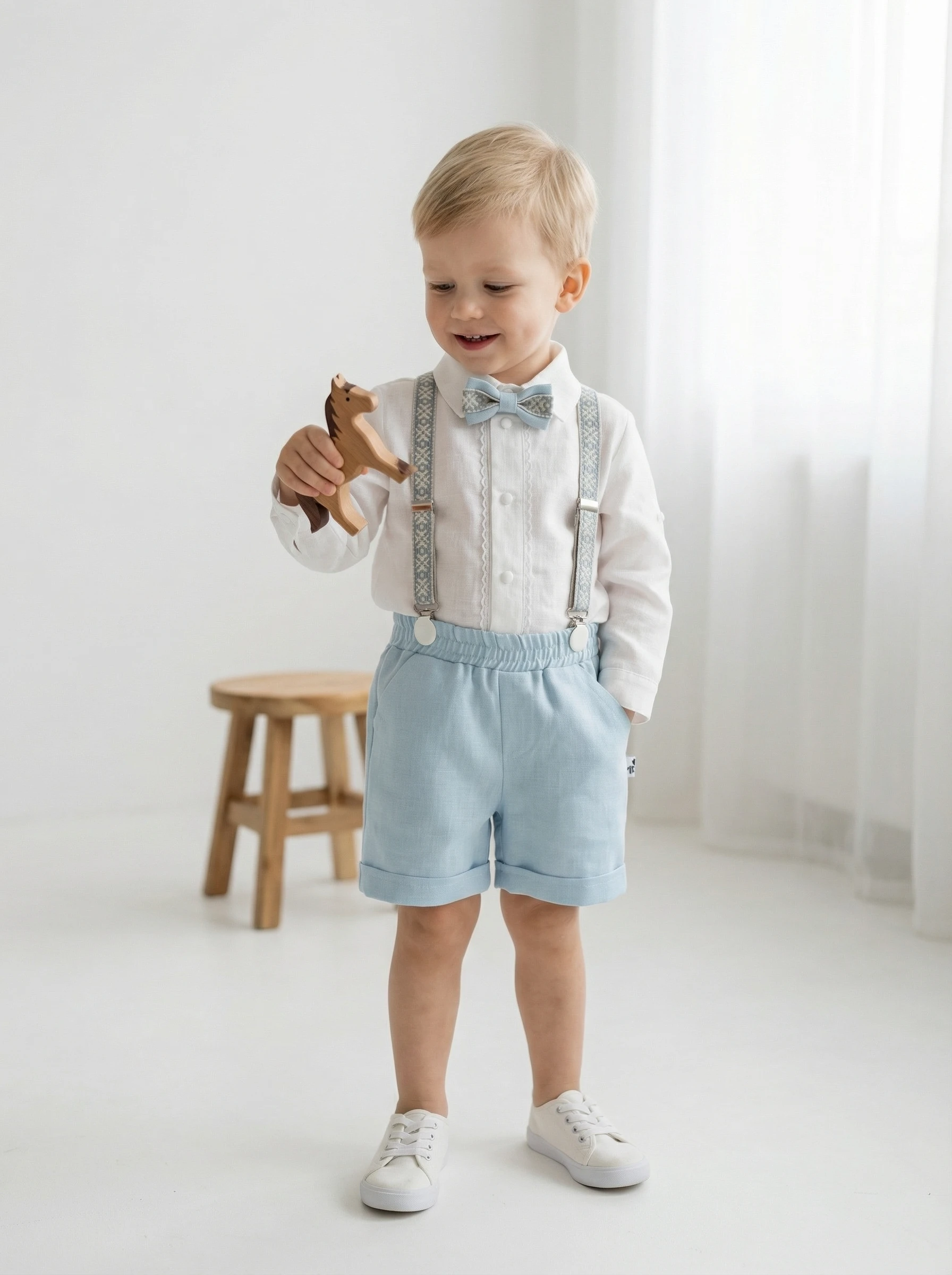 4 dalys ( šortai, marškiniai, petnešos, peteliškė)